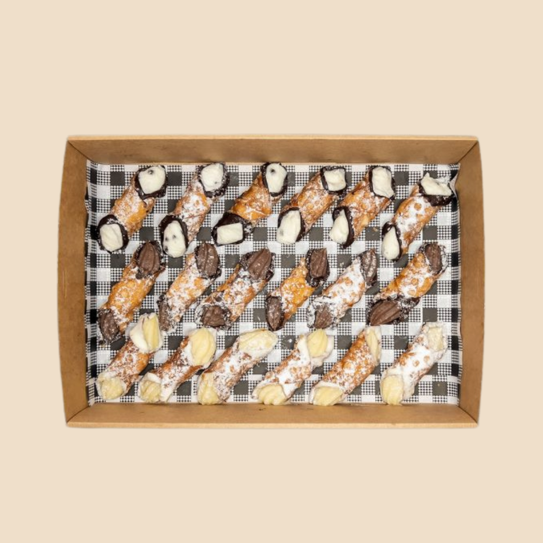 Delicious pastry tubes filled with creamy sweet ricotta, chocolate, vanilla or hazelnut fillings. These authentic Sicilian cannoli are pure indulgence.